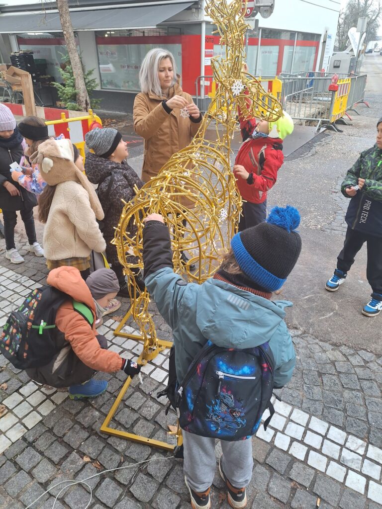 Traditionelles Christbaumschmuckbasteln und Aufhängen bei der Trattoria Geppetto in Traun. (November, 1b+ 2b)